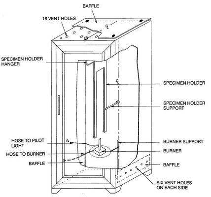 この器具が生地、多層生地、服のガウンで使用される生地アセンブリおよびキャンプのtentageの炎の抵抗を評価するのに使用されています。