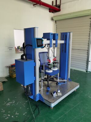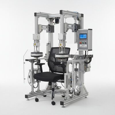 This test machine performs armrest horizontal static tests and durability tests, as well as armrest vertical static and durability tests based on BIFMA X5.1 and BIFMA X5.4 standards.